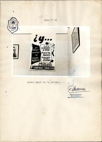 Registro fotográfico del procedimiento que la División Orden público realizara en la Sede del Comité Central de Avellaneda. Cada una de las piezas que componen el agrupamiento tiene epígrafe descriptivo, el sello de la División Investigaciones Sección Fotografía de la Policía de la provincia de Buenos Aires y la firma de Felipe Manera Subcomisario, Jefe Sección fotografía . El registro incluye vistas del exterior, de los espacios, de los carteles y cuadros colgados en las paredes, de blindajes, material bibliográfico. La presente fotografía forma parte de una serie más amplia cuyo contexto puede consultar siguiendo este enlace: https://atom.comisionporlamemoria.net/index.php/als-8