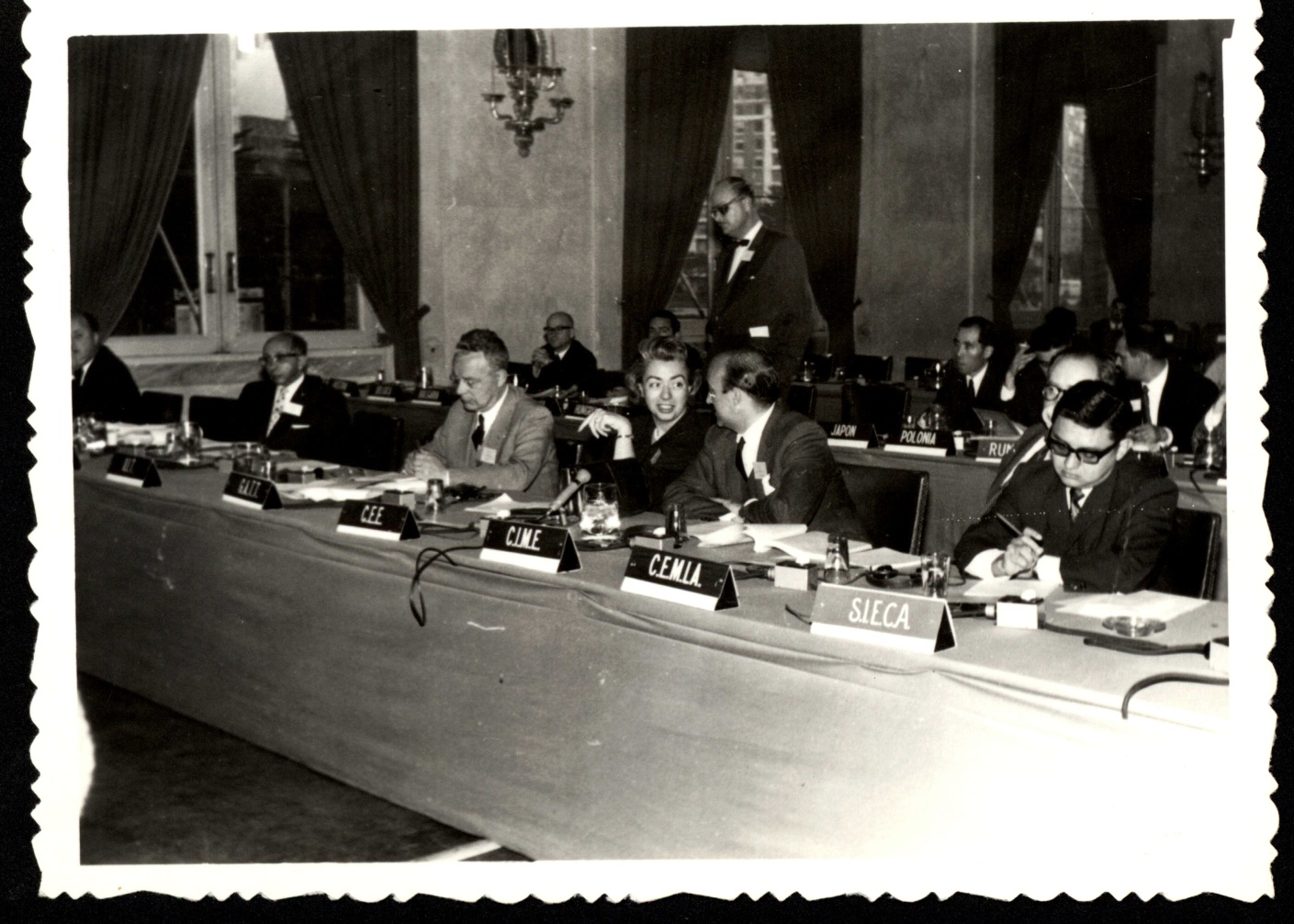 El segundo agrupamiento consiste en una serie de fotos dentro de un sobre con la inscripción "Fotografías obtenidas durante el Congreso de la CEPAL". Pueden observarse una serie de retratos de los asistentes. En el reverso de las fotos algunos están identificados.