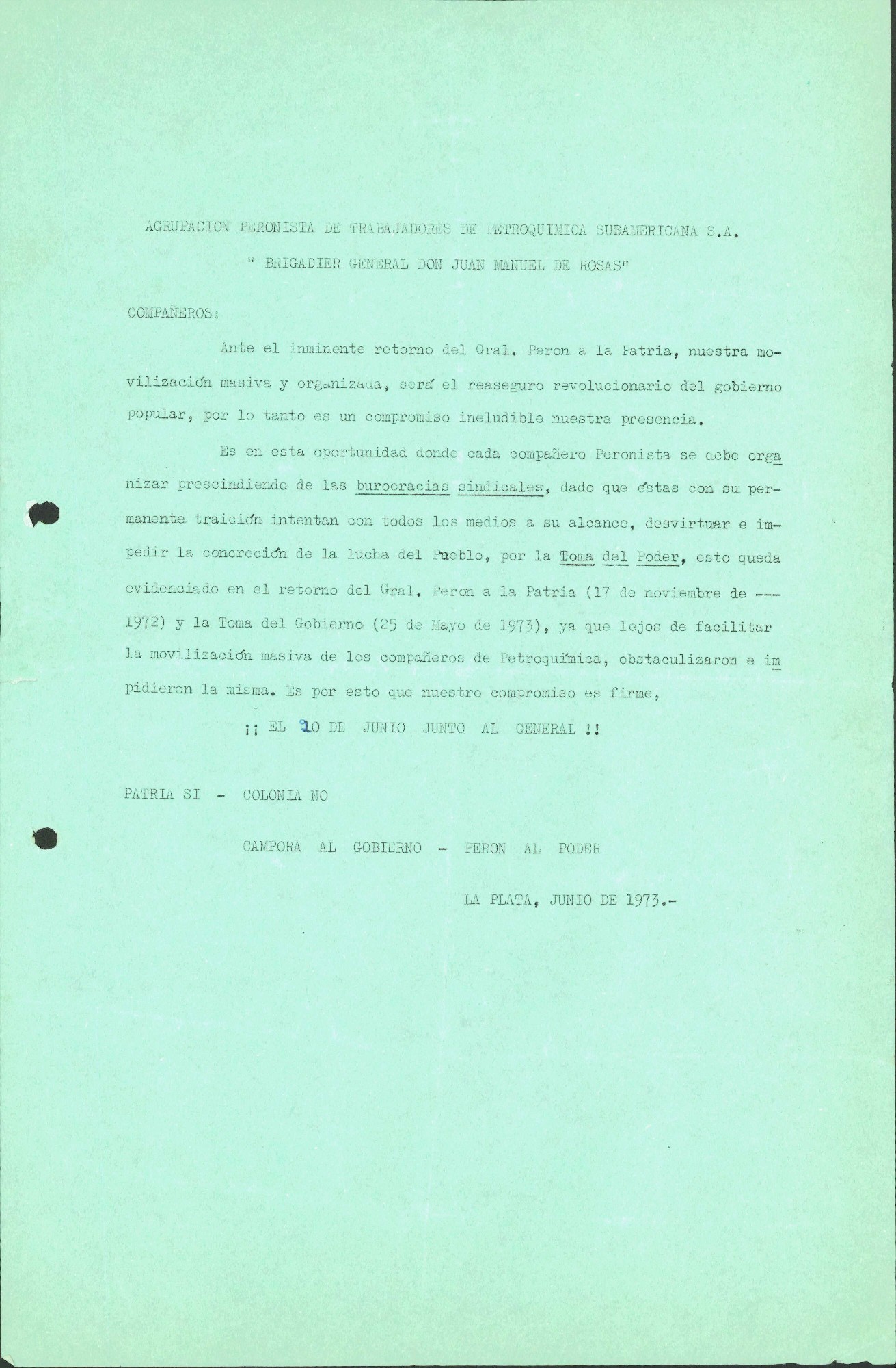 Agrupación Peronista de trabajadores de Petroquimica Sudamericana S.A "Brigadier General Don Juan Manuel de Rosas"