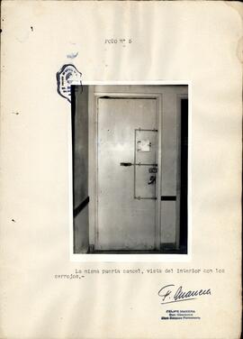 Registro fotográfico del procedimiento que la División Orden público realizara en la Sede del Comité Central de Avellaneda. Cada una de las piezas que componen el agrupamiento tiene epígrafe descriptivo, el sello de la División Investigaciones Sección Fotografía de la Policía de la provincia de Buenos Aires y la firma de Felipe Manera Subcomisario, Jefe Sección fotografía . El registro incluye vistas del exterior, de los espacios, de los carteles y cuadros colgados en las paredes, de blindajes, material bibliográfico. La presente fotografía forma parte de una serie más amplia cuyo contexto puede consultar siguiendo este enlace: https://atom.comisionporlamemoria.net/index.php/als-8